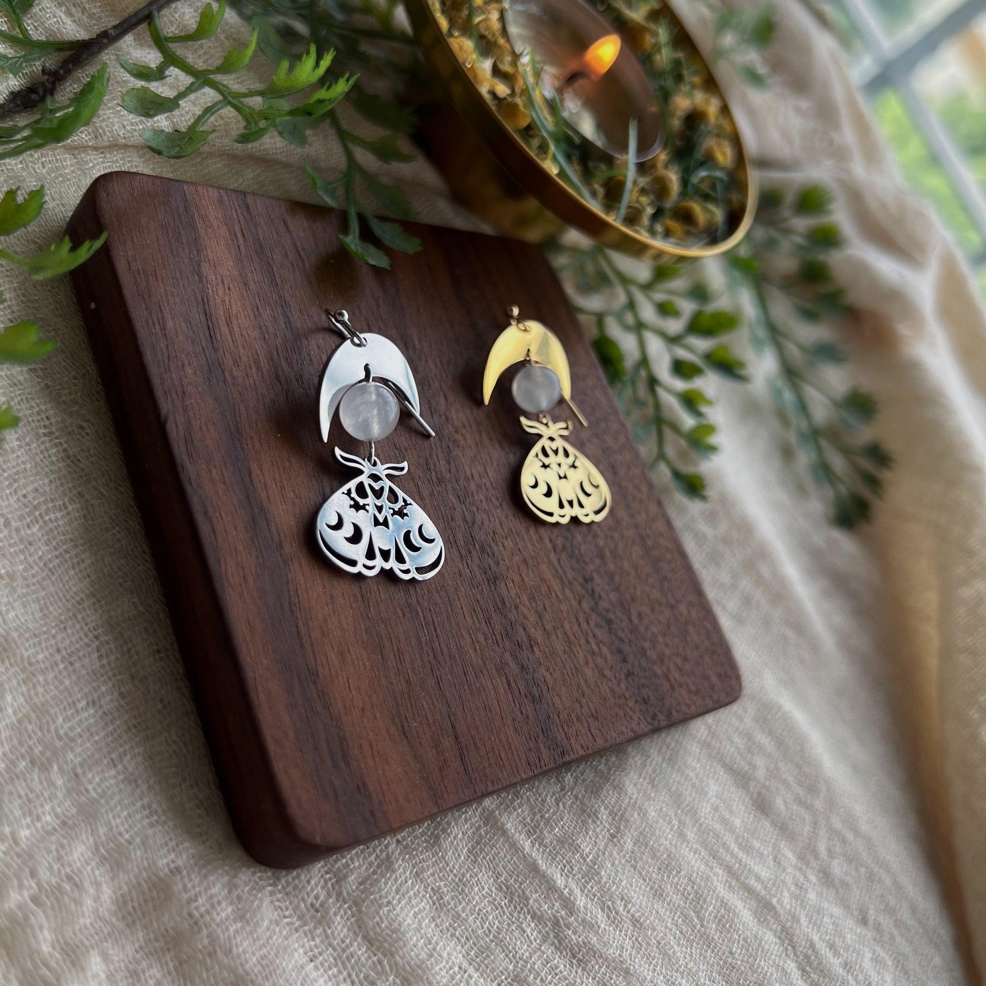 Entdecke die perfekte Verbindung von Naturverbundenheit und Mystik mit diesen einzigartigen Ohrringen. Die filigranen Anhänger sind in Gold und Silber erhältlich und präsentieren ein kunstvolles, durchbrochenes Design.