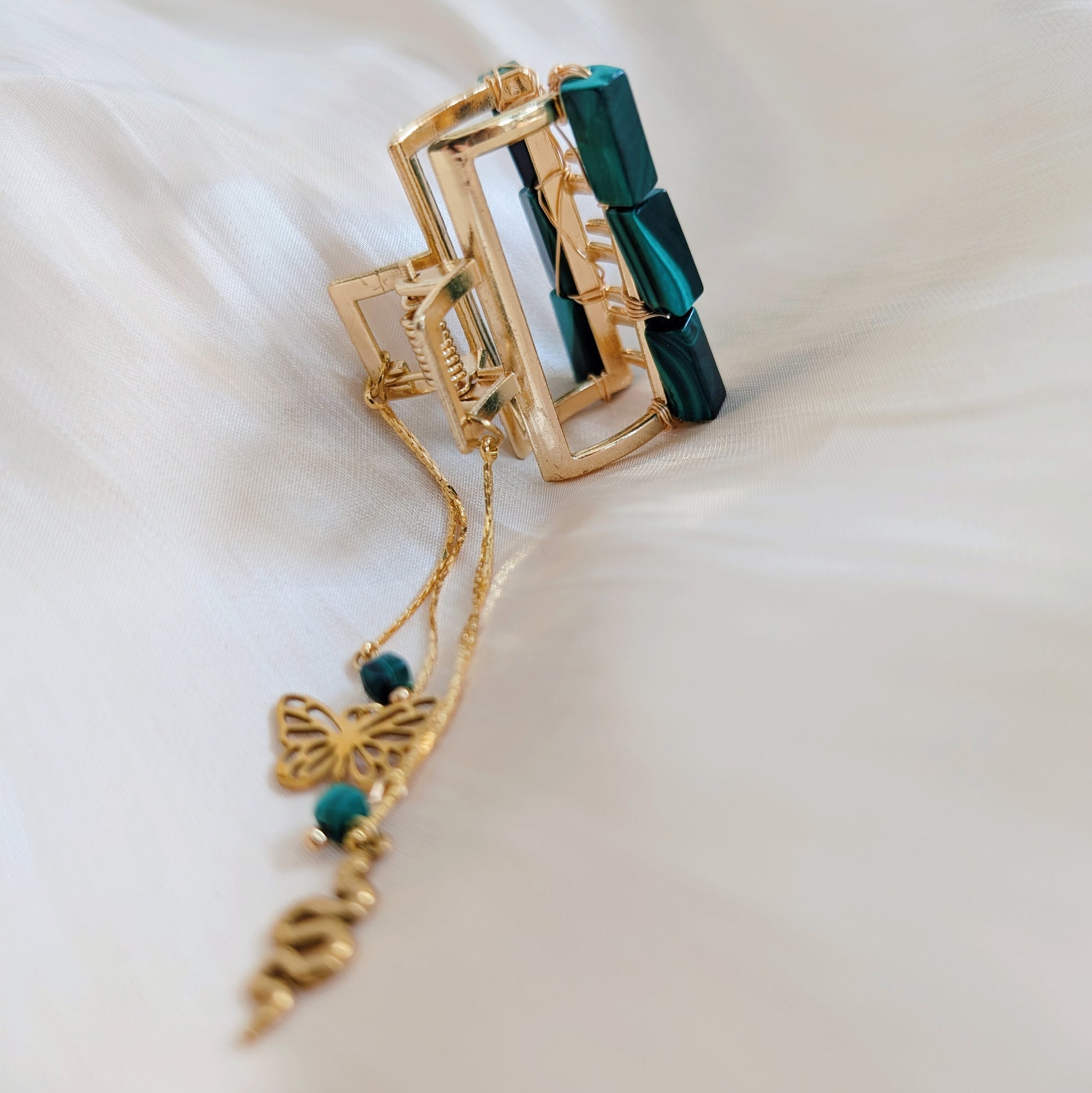 Diese elegante Haarklammer wird durch deinen persönlichen Anhänger zum echten Unikat: Ob Schwert, Schlange oder Schmetterling – kombiniert mit Onyx oder Malachit entsteht ein dezenter, aber wirkungsvoller Hingucker für jeden Look.