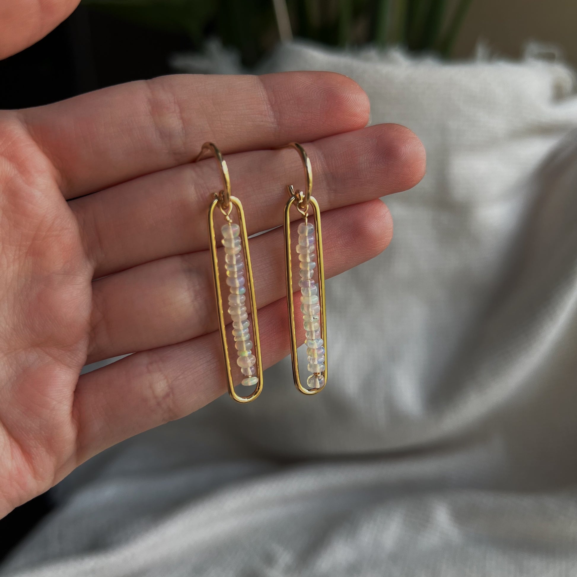Diese Creolen sind das perfekte Accessoire für Dich, um die Schönheit der Natur in Deinen Alltag zu integrieren. Mit jedem Schritt, den Du machst, fangen die Opalperlen das Licht ein und zaubern einen sanften Glanz, der an Sonnenstrahlen erinnert, die durch das Blätterdach eines Waldes brechen.
