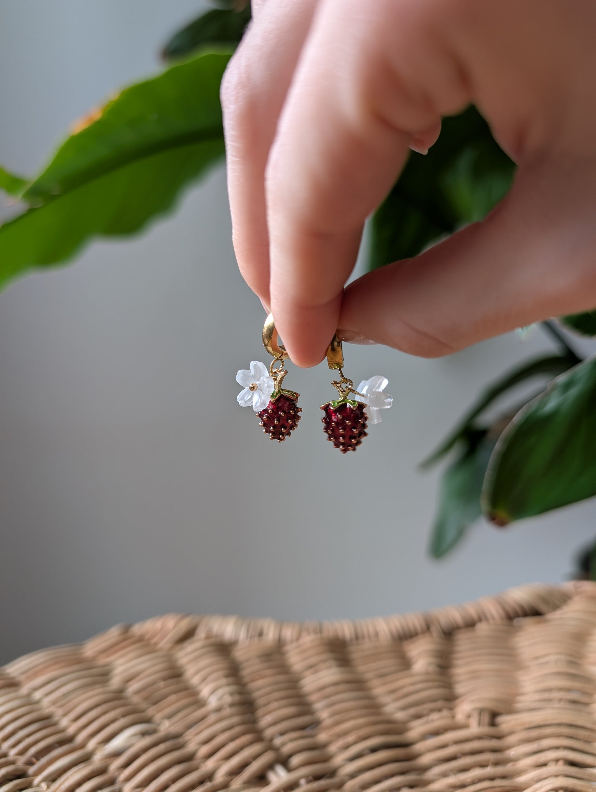 Diese Ohrringe bringen einen Hauch von Märchenwald in deinen Alltag. An feinen Edelstahlcreolen tanzen Emaille-Erdbeeren und eine kleine weiße Blüte – wie frisch gepflückt aus einem verwunschenen Garten. Perfekt für Tage, an denen du barfuß durch weiches Gras laufen oder einfach etwas Magie bei dir tragen möchtest.