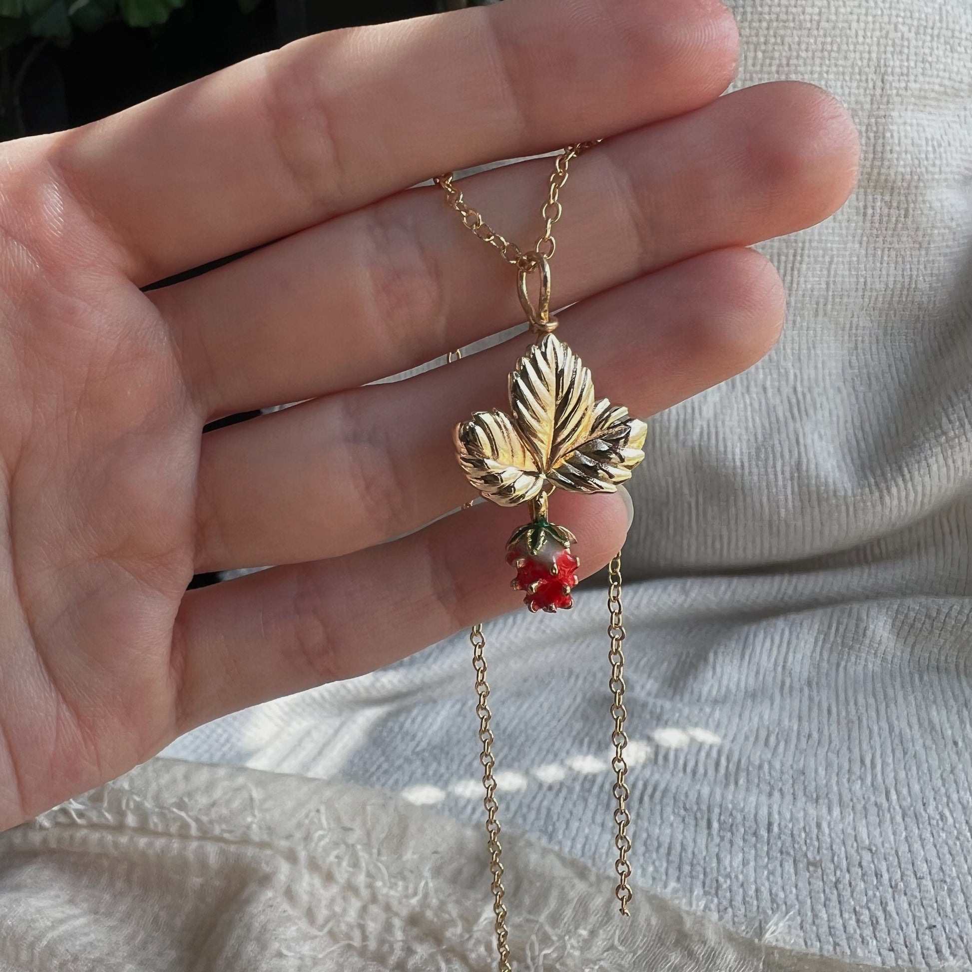 Entdecke unsere goldfarbenen Anhänger mit einer bezaubernden Walderdbeere aus Emaille, der die natürliche Schönheit dieser Früchte einfängt. Dieser besondere Anhänger verleiht deinem Look eine subtile, aber dennoch auffällige Note, die von der Wildnis inspiriert ist. Hergestellt aus hochwertigen Materialien, sind sie ein Ausdruck von Natürlichkeit und Individualität, perfekt für diejenigen, die einen Hauch von Natur in ihrem Schmuckstück suchen.