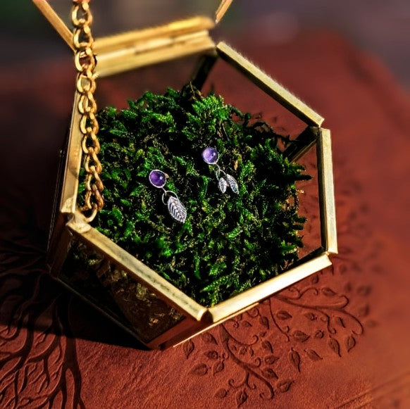 SPELLLEAF - Ohrringe | 925 Silber & 999 Silber, Stecker mit Amethyst und Blattanhänger